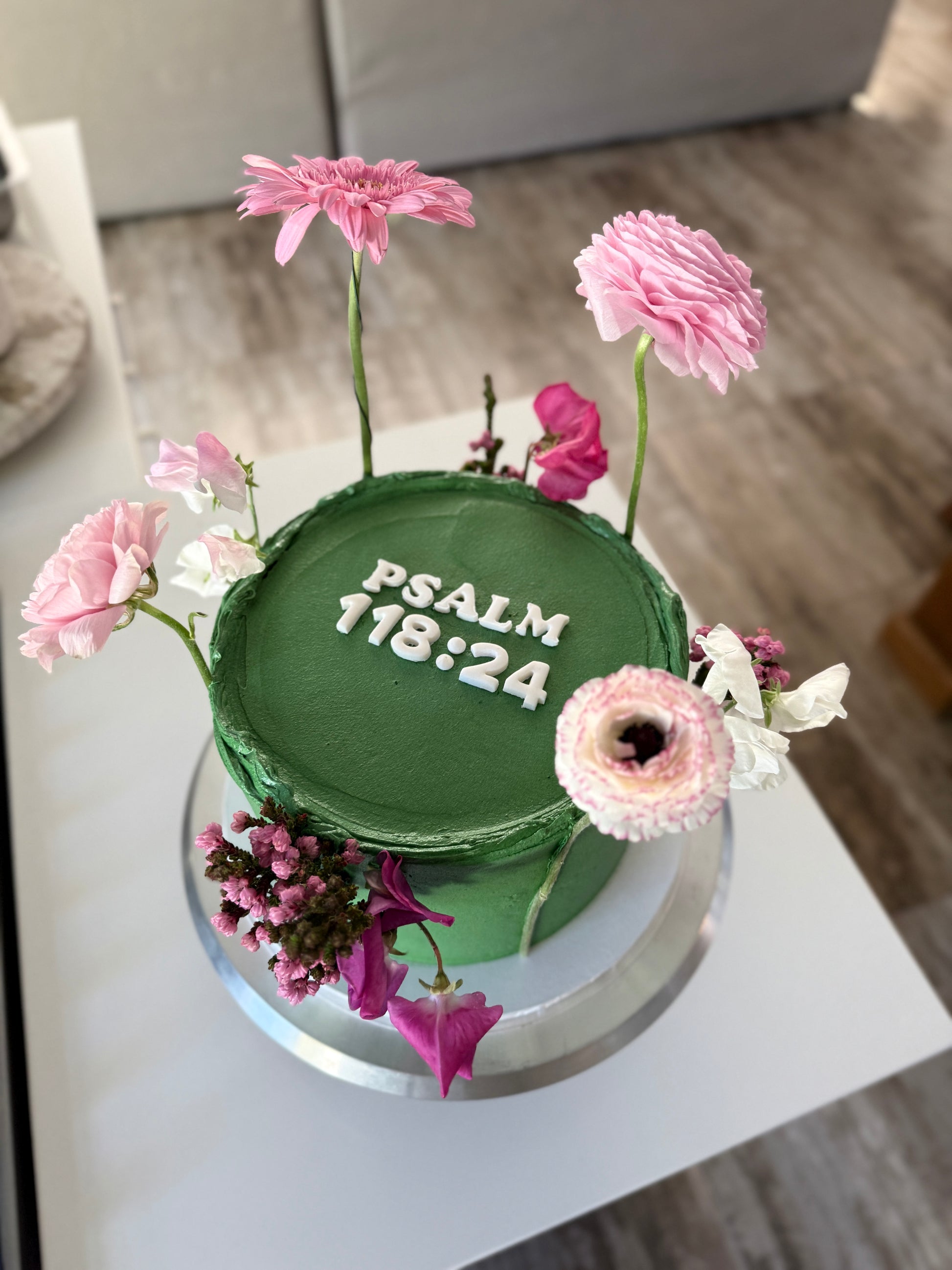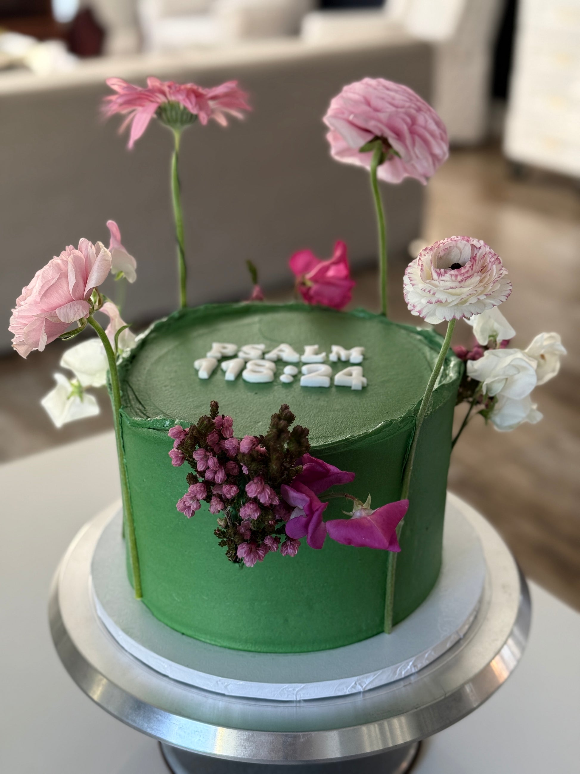 A cake with beauty and grace. Soft blooms to make a lasting impression. A garden of grace. Choose a base color and flower color.