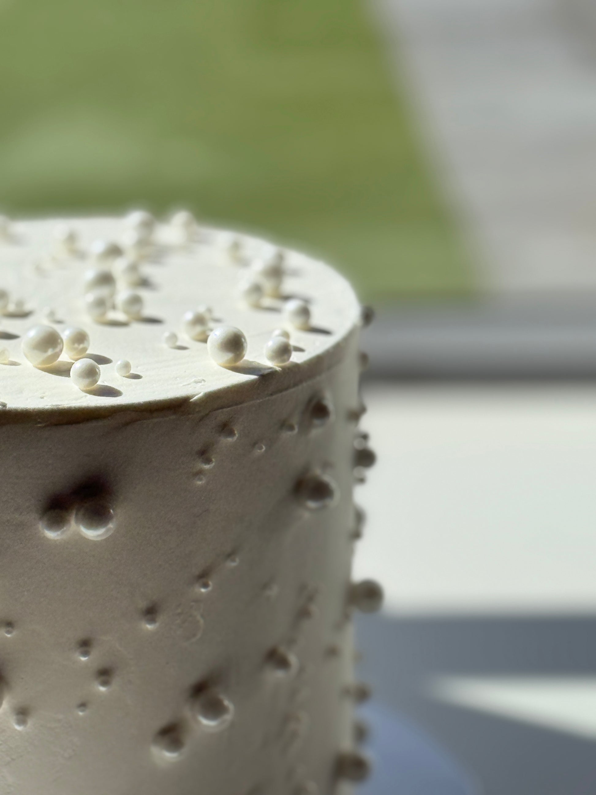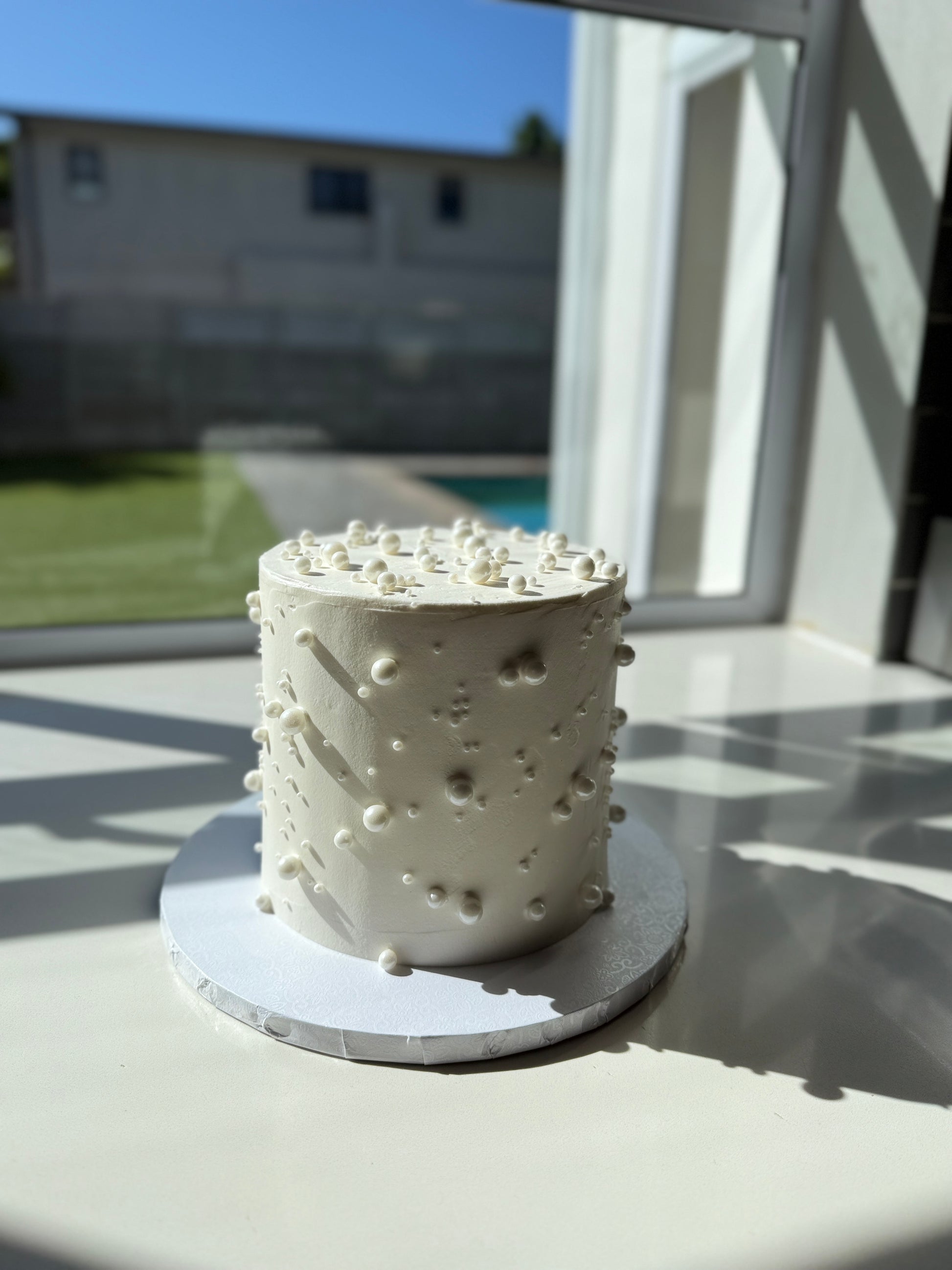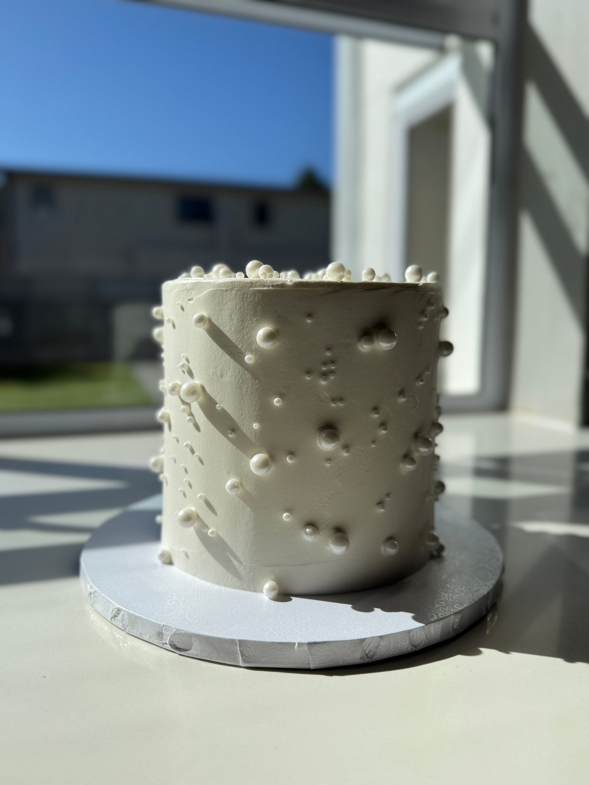 A truly elegant and chic design, which works for any occasion. White, pearls and a clean slate - what more could you want?